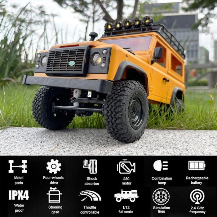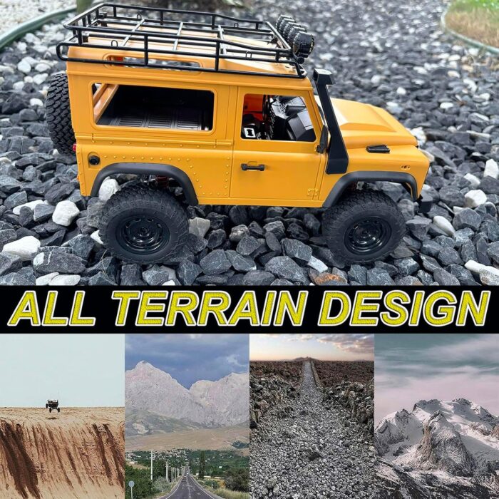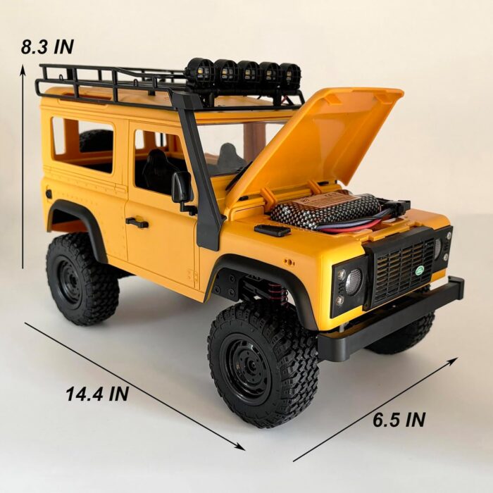 【Realistic Design】The MN98 is a highly detailed 1/12 scale RC crawler modeled after the iconic Land Rover Defender, with a brushed 280 motor, 2kg load, 17g waterproof servo, integrated control board, a 4WD drive system, 2 throttle rates, an openable engine hood, exquisite interior and functional LED lights. This makes it appealing to collectors and fans of scale realism.