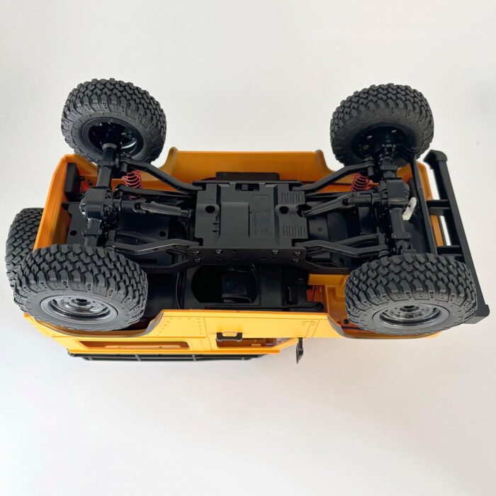 【Strong Chassis】A professional chassis with an upgraded steering system allows the MN98 RC truck maximum climbing at a 46-degree, large twist angle, strong torque, and flexible performance. With a 4-link straight axle suspension, as well as four springs to absorb shocks and maintain stability, the chassis system protects the RC rock crawler from vibration caused by craggy road surfaces.