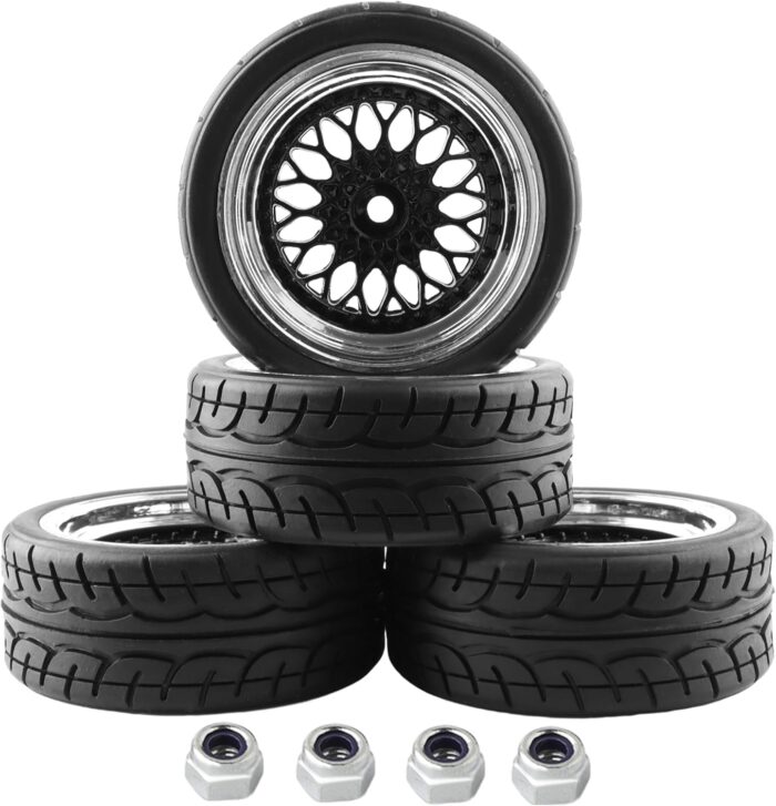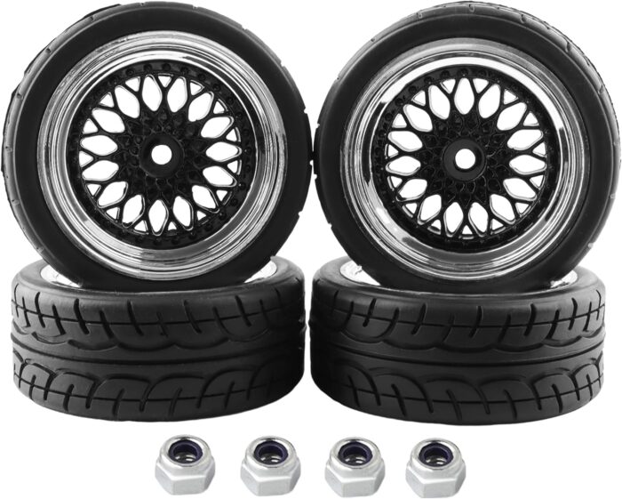 Package Inclueded : 4 Pieces RC Car Tires Wheels and 4 Pieces Wheel Lock Nut(The tire is not glued on rim. It’s mounted on rim with foam inserted)