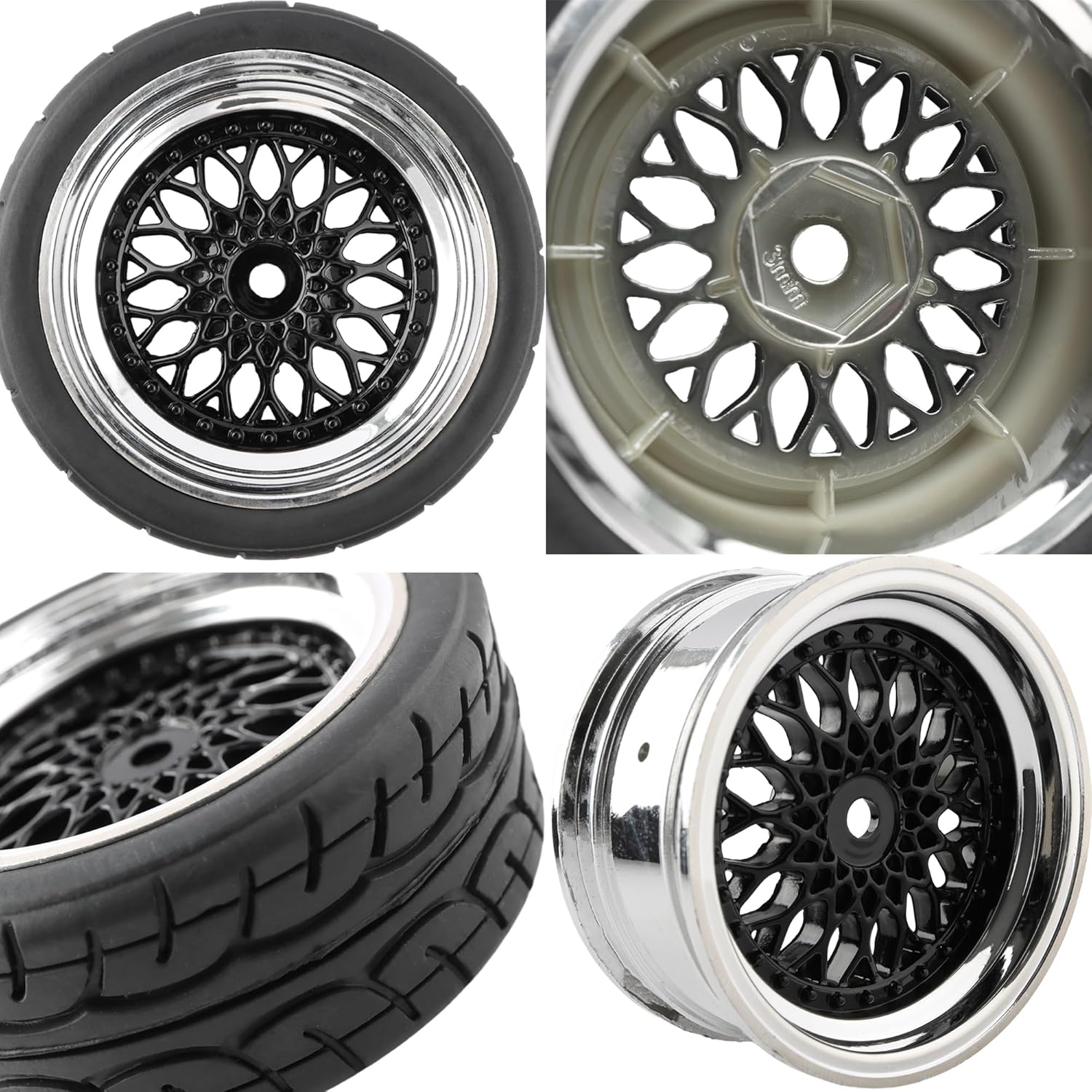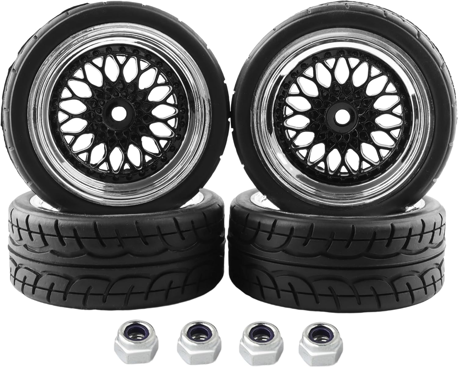 4PCS 12mm Hex Hub RC Cars Wheels and Tires,62mm On Road Touring Rubber Racing Rally Tires Set for 1:10 1:16 1:18 XV01 TT01 TT02B HSP 94122 94123 94103 3850 3851 FW06 16889 RC Cars(Black)