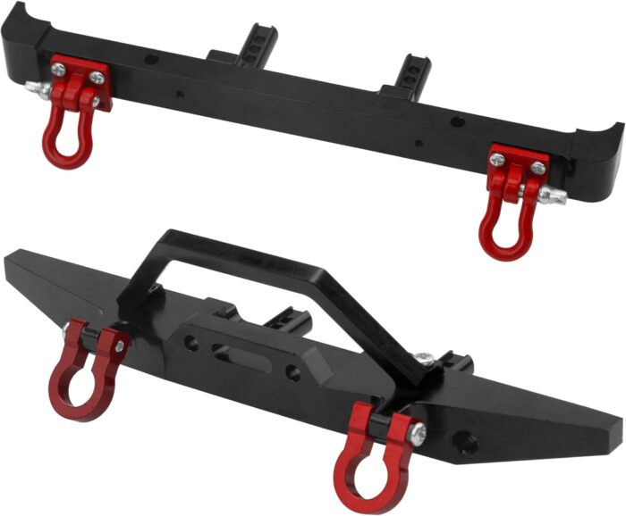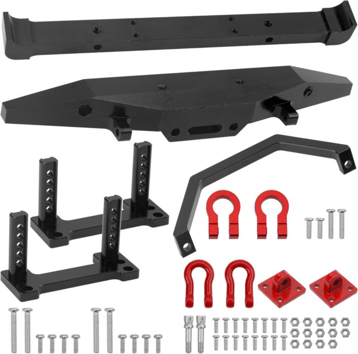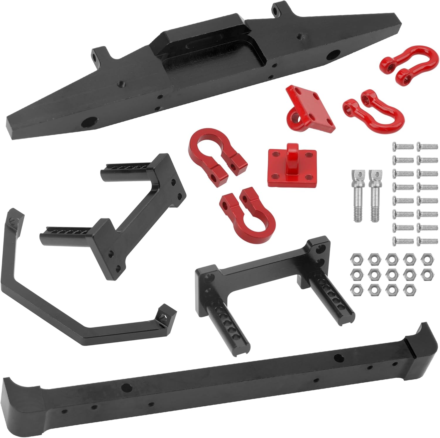 Aluminum Front Rear Bumper & Trailer Hook Compatibke with MN Model MN128 MN-128 1/12 RC Car (Black)