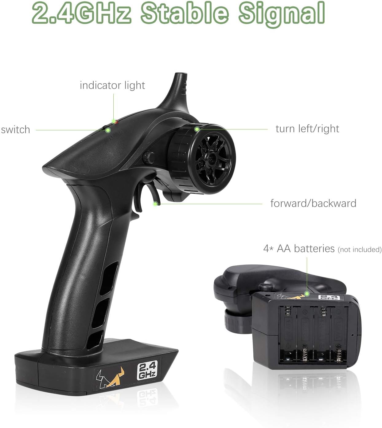 * 2.4Ghz anti-interference control frequency supports multi-car competition. Full-scale steering gear, proportional control.