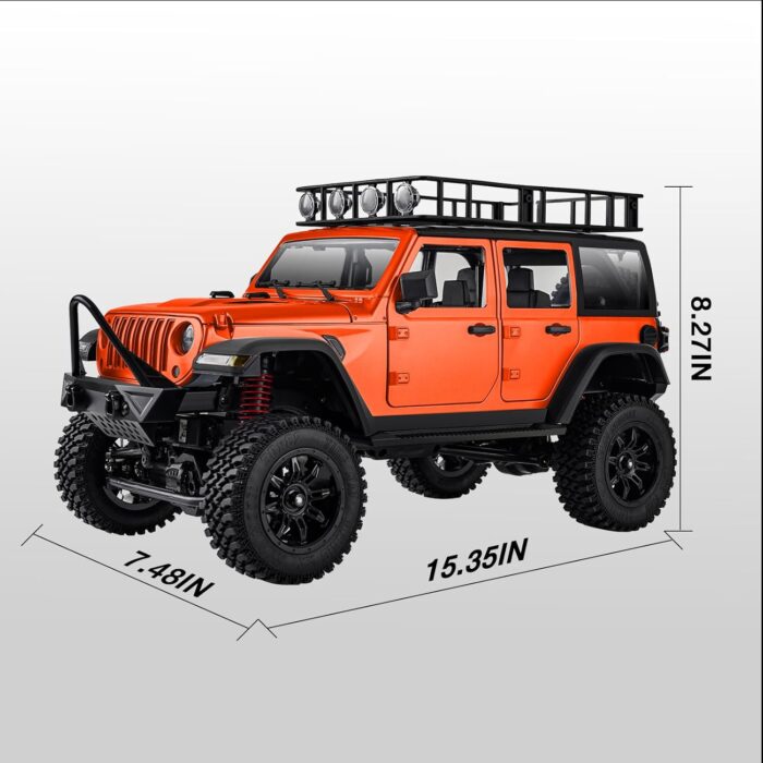 ✅𝗥𝗘𝗔𝗟𝗜𝗦𝗧𝗜𝗖 𝗗𝗘𝗦𝗜𝗚𝗡 & 𝗗𝗨𝗥𝗔𝗕𝗟𝗘 𝗕𝗨𝗜𝗟𝗗 – Featuring a highly detailed 1/12 scale RC crawler wrangeler design, this MN128 4X4 RC jeep crawler showcases realistic bodywork and true-to-life proportions. It features a sturdy hard plastic shell, complete with functional doors, roof racks, bumpers, and side mirrors for an authentic appearance. Equipped with a 4WD system, powerful 390 magnetic motor and 250g waterproof servo, it boasts exceptional suspension, ensuring maximum traction and stability.