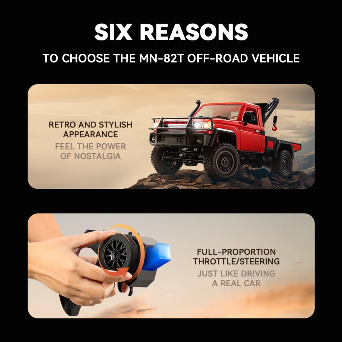🚚 【MN82T RC Crawler】This MN82T RC truck is designed with a realistic off-road function, it is a decent truck to enjoy RC fun with friends and share a happy time with families, suitable for adults aged 16+.