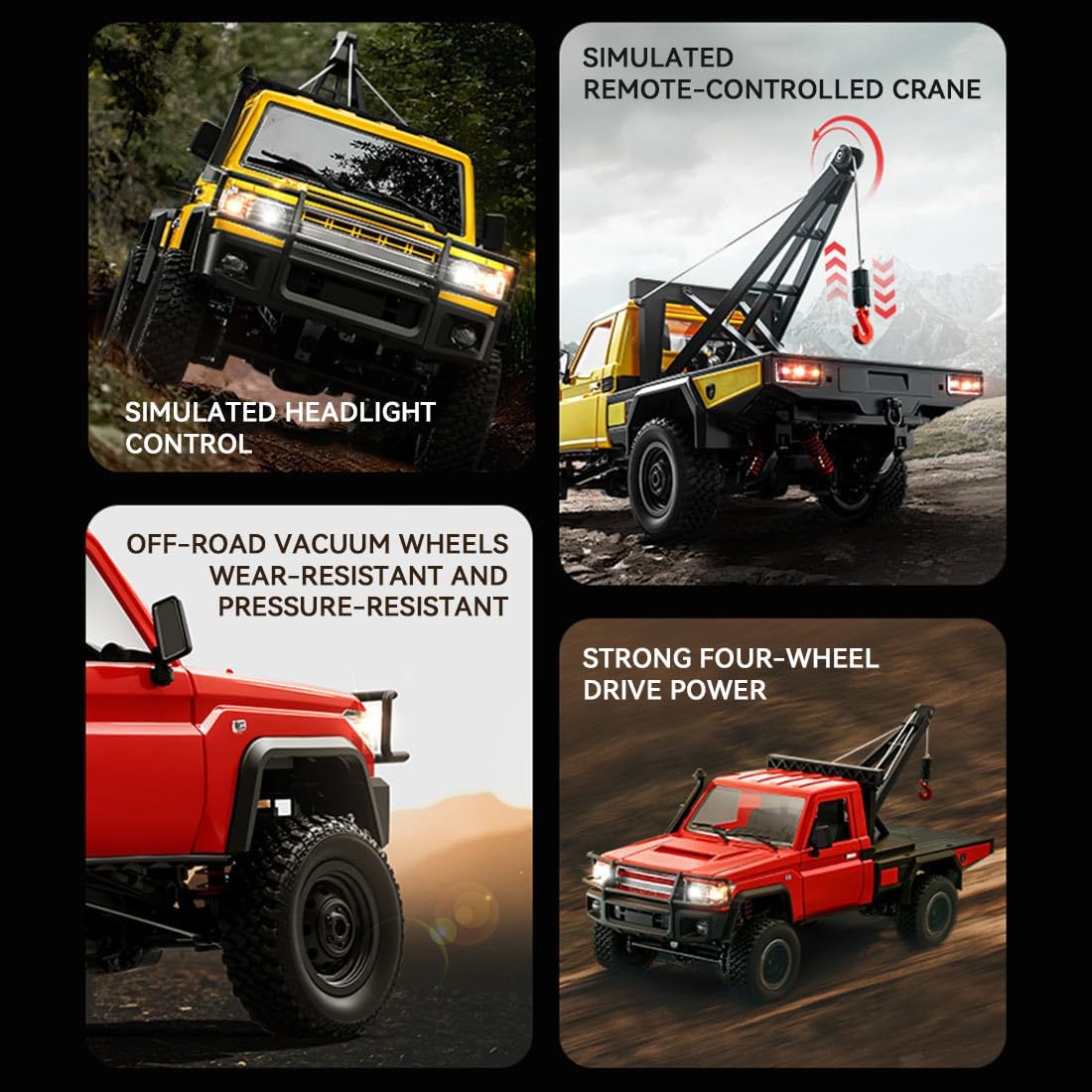 The MN82T LC79 RC crawler truck comes in a ready-to-run (RTR) package, including a remote, 7.4V 1200mAh battery, and charger, allowing for instant play right out of the box. Ideal for on-roading, off-roading and rock crawling, it’s a great hobby gift for RC enthusiasts to enjoy with friends and family. Perfect for Thanksgiving and Christmas gifts for adults 16+.