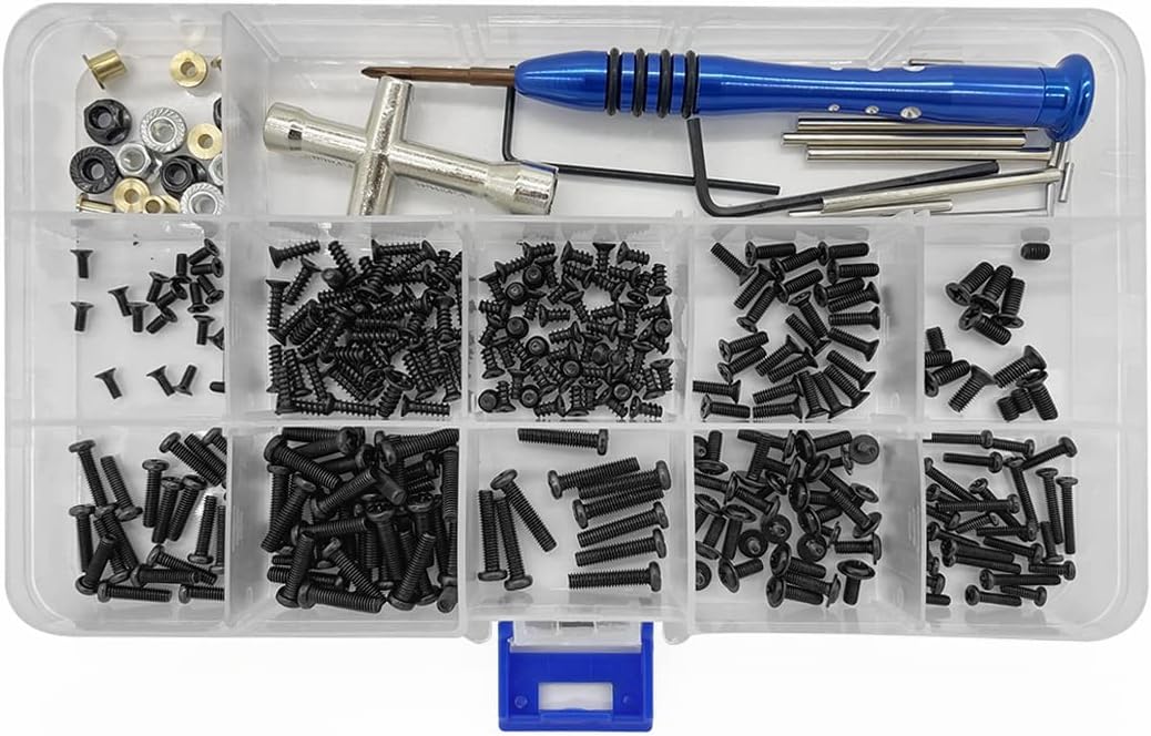 All In One Set: The RC car tools kit includes a variety of sizes tools(such as screwdriver, screws, wrench, machine silk, etc)to suit your needs..The bolts kit includes 3 series of M2, M2.5, M3 screws, can meet DIY projects, repair rc car and family use.