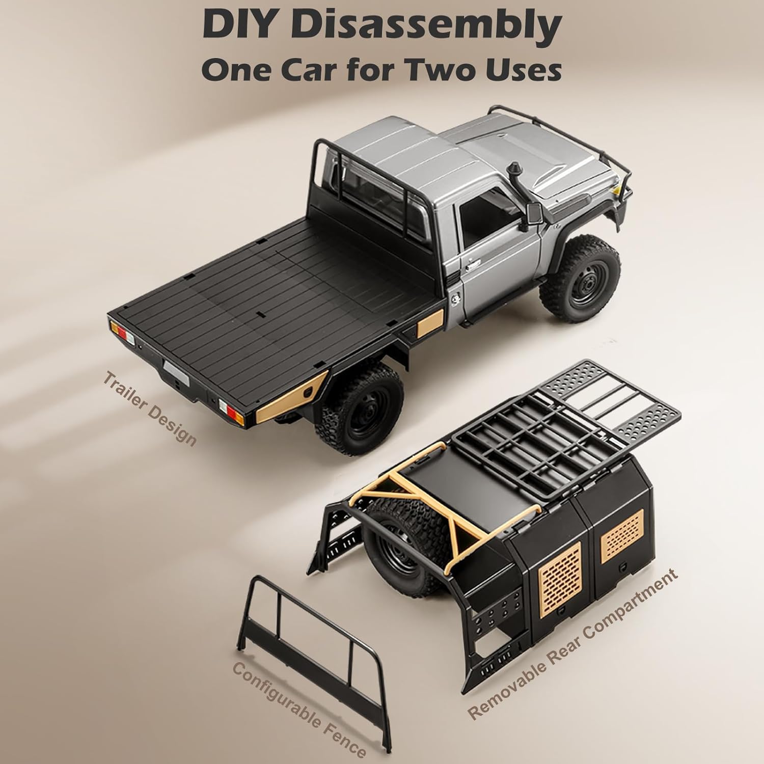 Authentic 1/12 Scale Adventure:Experience “true-to-life driving” with proportional 2.4GHz remote control—throttle and steering respond incrementally to mimic real vehicle handling. Switch between two speed modes (fast/slow) for versatile terrain mastery, perfect for beginners and experts alike
