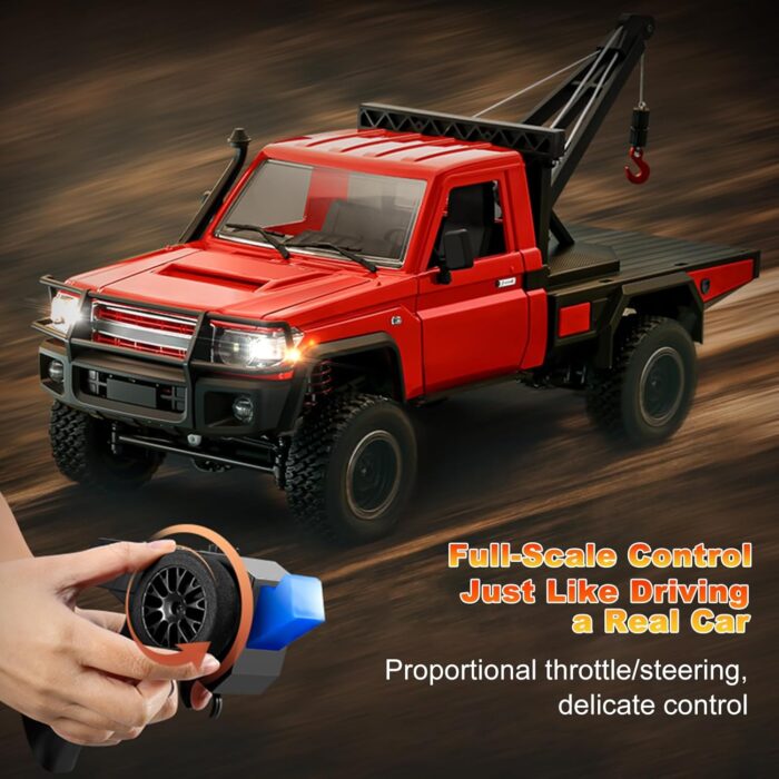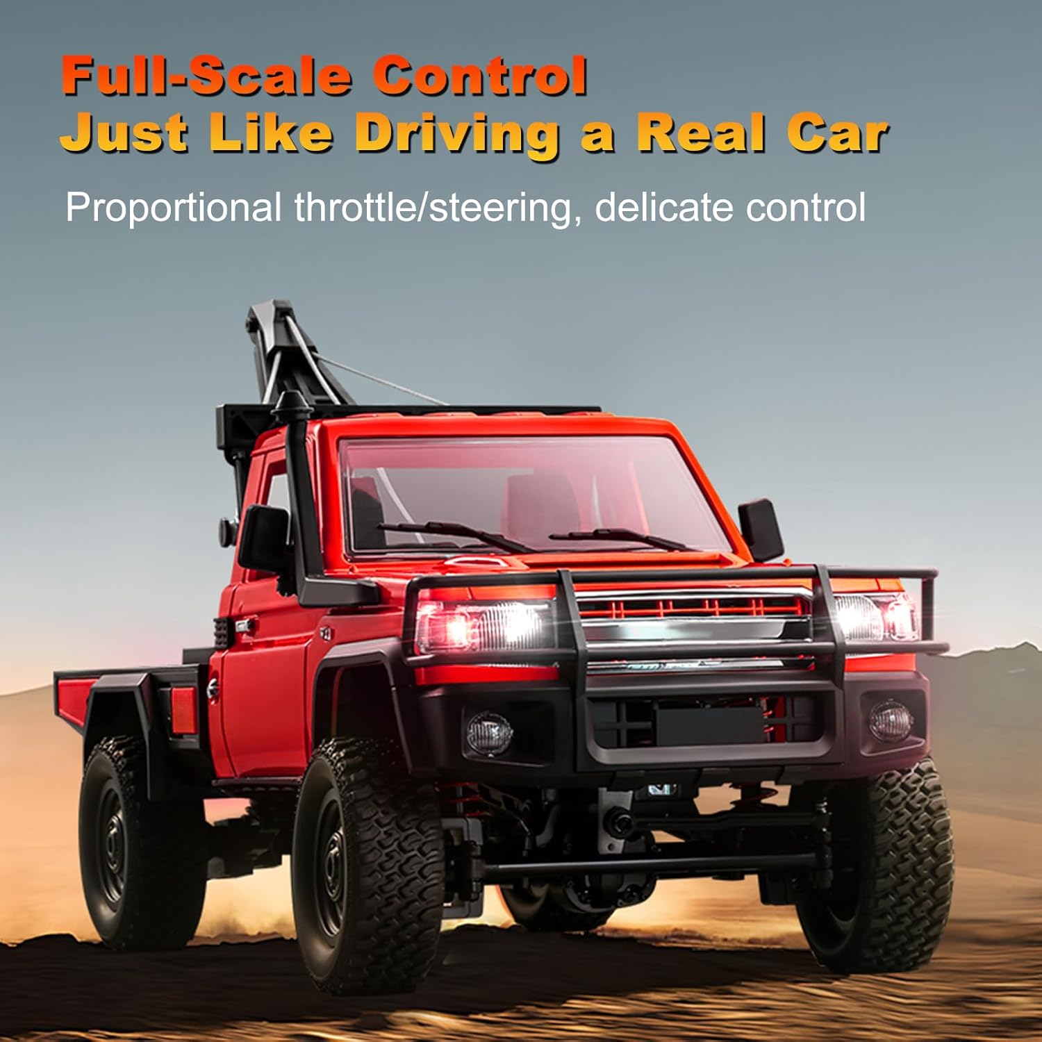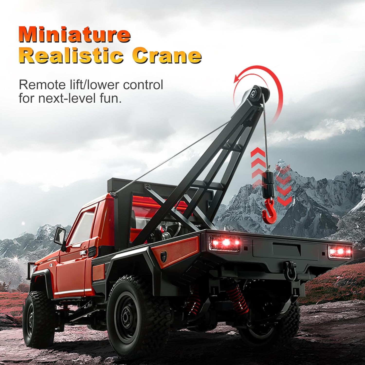 RC Crawler, 1:12 Scale MN82 New Upgrades MN82-T RC Crane Truck, 4WD LC79 Land Cruiser Rock Crawler with Lights, Speed Adjustment, Crane, Tires All Terrain Wrecker for Teens Adults(Red)