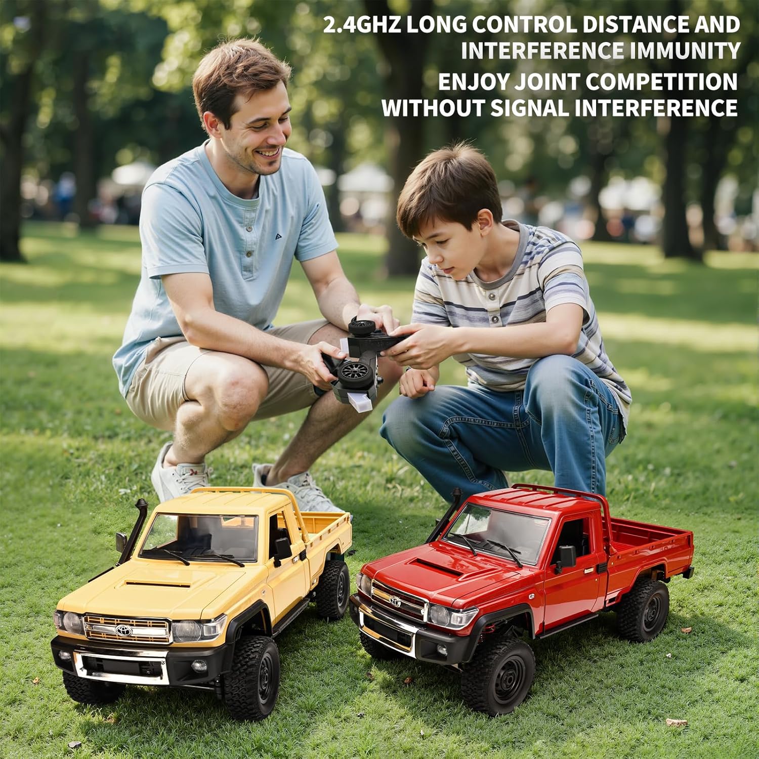 【Anti-Interference Long-Range Design 】The 2.4GHz controller features a high frequency,no response delay,long control distance,and strong anti-interference capabilities,allowing multiple cars to play simultaneously without signal interference.Its proportional throttle and steering functions are impressive.When manipulating the throttle/steering,the RC cars responds gently rather than instantly accelerating/decelerating/turning left/turning right at full speed,resulting in better controllability.