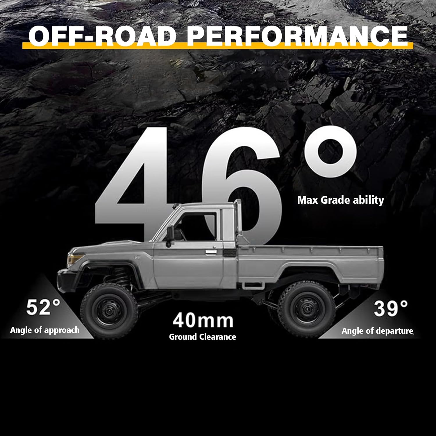 ✅𝗘𝗡𝗛𝗔𝗡𝗖𝗘𝗗 𝗗𝗨𝗥𝗔𝗕𝗜𝗟𝗜𝗧𝗬 𝗪𝗜𝗧𝗛 𝗠𝗘𝗧𝗔𝗟 𝗨𝗣𝗚𝗥𝗔𝗗𝗘𝗦 – This MN-82 PRO RC pickup truck features a selection of high-quality metal components, including metal shocks, shock mounts, connecting rods, tie rods, front tie rod holders, servo arms, and driveshafts. These durable metal parts enhance overall performance, providing better stability, strength, and control. Perfect for off-road exploration and competitive hobby racing.