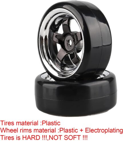 Plating 5-Spoke 12mm Hub Wheel Rims with Hard Plastic Tires for RC 1:10 Drift Car Color Black, 1/10 RC Tires and Wheels for 1/10 Redcat HSP HPI RC Drift Cars