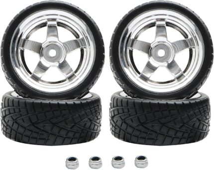 4PCS 12mm Hex Hub RC Cars Wheels and Tires,62mm On Road Touring Rubber Racing Rally Tires Set for 1:10 1:16 1:18 XV01 TT01 TT02B HSP 94122 94123 94103 3850 3851 FW06 16889 RC Cars(Silver)