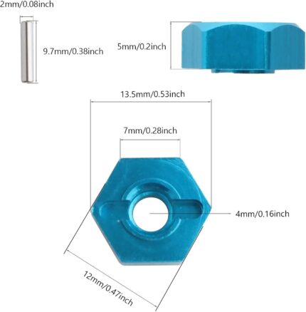 12mm Wheel Hex Hubs Drive Adapter 5mm Thick & Flange M4 Lock Nuts Aluminum for Redcat Axial HSP WLtoys Himoto RC Truck Model Car Upgrade Parts (Blue)