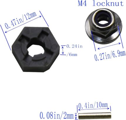 Blomiky 8 Pack 12mm 16440 Wheel Hub Hexes and 8 Pack M20101 Wheel Hex Pins and M40 M4 Wheel Locknuts Spare Parts for 1/10 1/12 1/14 1/16 1/18 Scales RC Truck / 9125 Hex Pin Locknuts 2