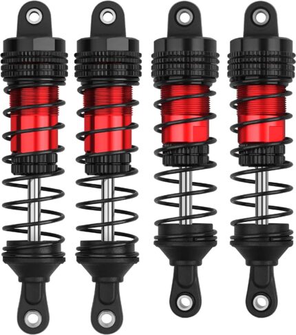 4PCS RC Oiled Shocks Absorber Set Fit for 1/12 1/14 1/16 RC Cars WLtoys 144001/124019/124018 MJX, SCY and HBX RC Buggy Off-Road Racing Upgraded Parts (Black Red)