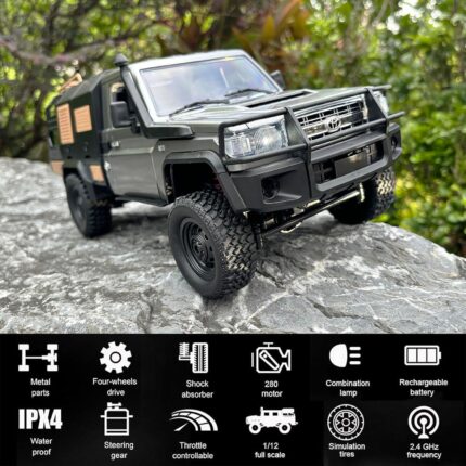 MN82S RC Crawler 1/12 Scale Remote Control Rock Crawler RC Truck 4×4 Off-Road Toyota Land Cruiser RTR All Terrain Car 280 Motor Proportional Throttle Steering Hobby Vehicle for Adult